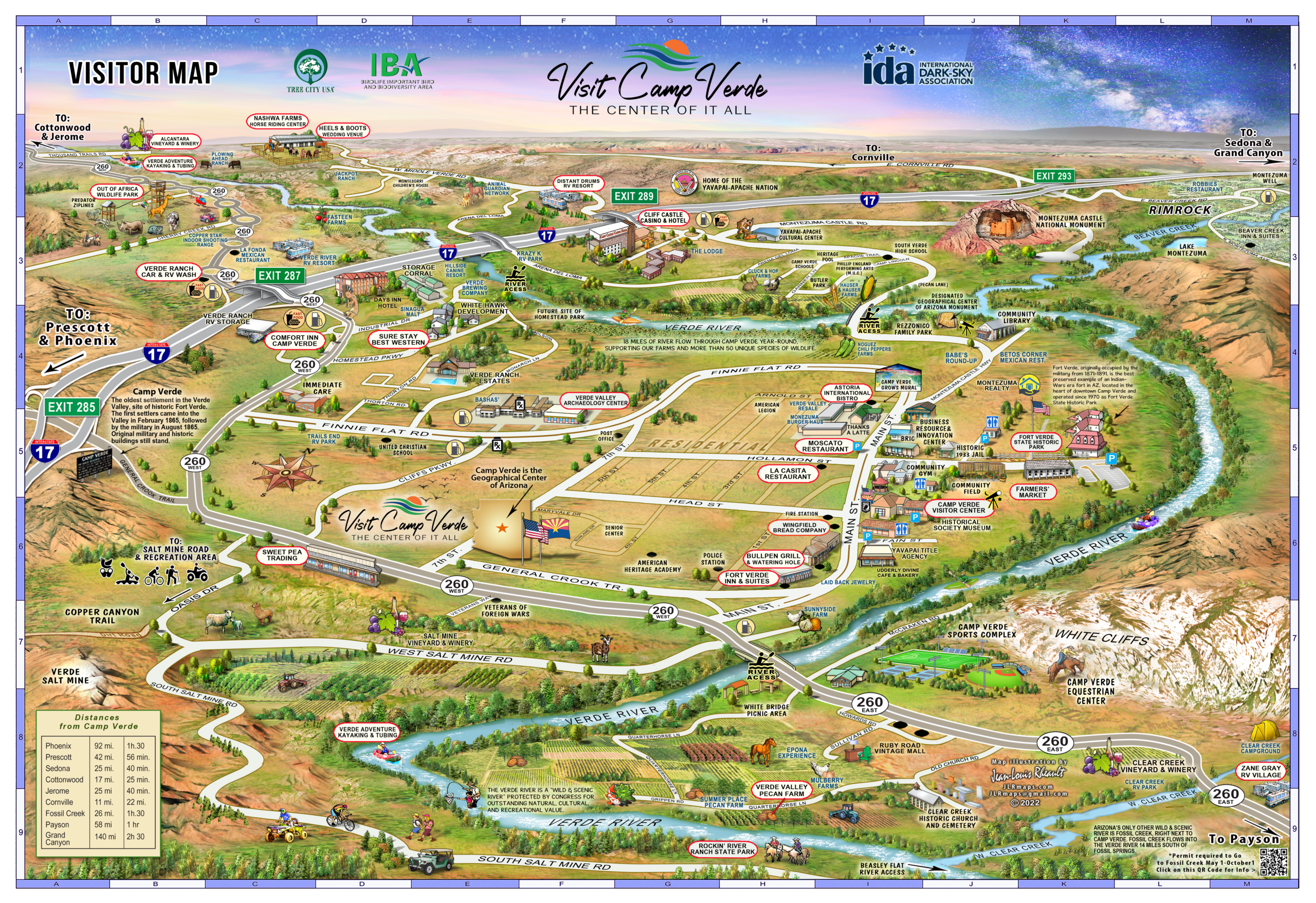 Our visitors map is fully interactive where you get a birds eye view of all there is to do in Camp Verde. You can click on the businesses with an outline to learn more about them. The map shows our farms, businesses, nearby municipalities, and more! Click below and start exploring Camp Verde!